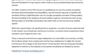 Submission highlighting aspects of the MESL research which relate to issues predominantly experienced by women